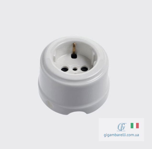 Порцелянова розетка UNEL – з центральним заземленням – білий глянц