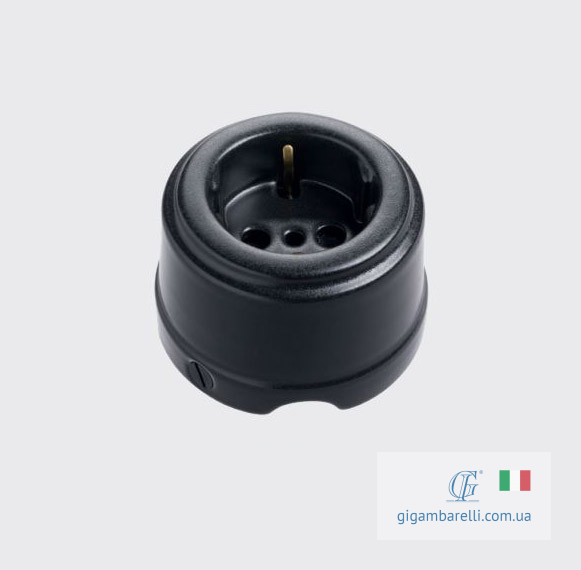 Порцелянова розетка UNEL – з центральним заземленням – чорна матова