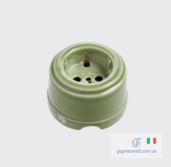 Порцелянова розетка UNEL – з центральним заземленням – зелений глянц
